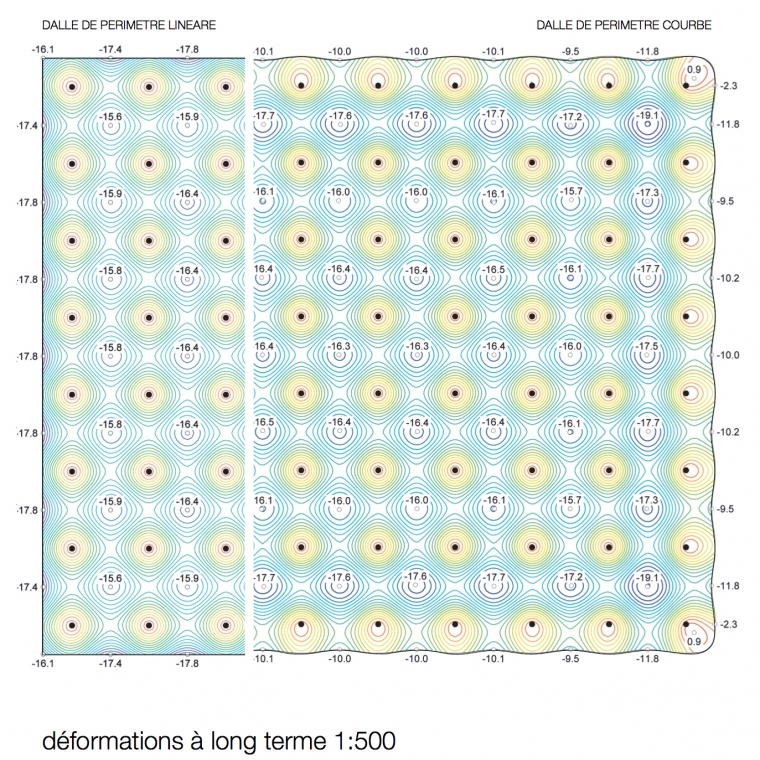 Face à la complexité d’un programme destiné à évoluer, la structure proposée ne recherche une prouesse technique mais une capacité polyvalente à se mettre au service du programme. Elle est constituée d’un système poteaux-dalles éprouvé, plan libre, figure unitaire par excellence, sa portée de dix mètres quatre-vingts devient le dénominateur commun des besoins dimensionnel nécessaire aux chercheurs et aux étudiants