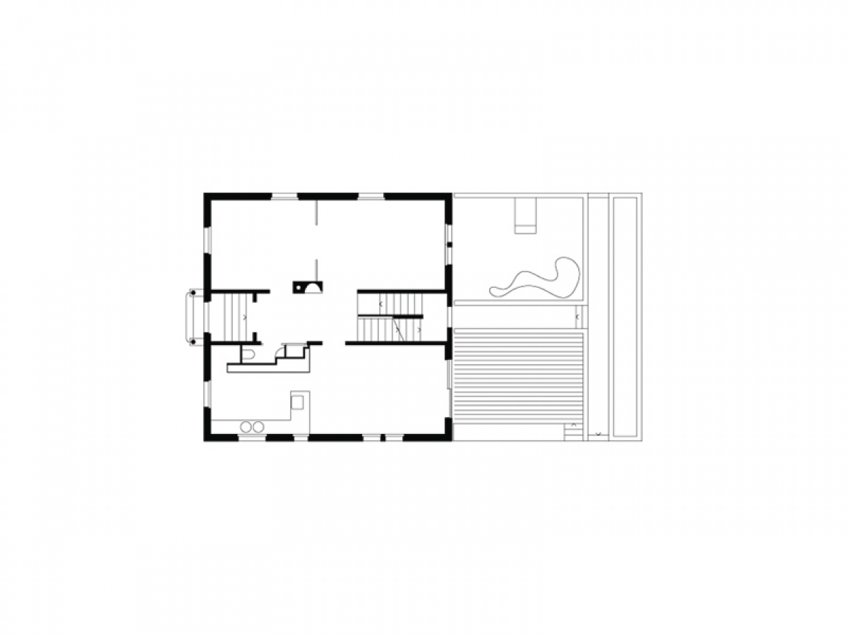 Dans le cadre de la transformation d’une maison du début du vingtième siècle, ce projet d’aménagements extérieurs cherche à construire un nouveau paysage. Un dispositif géométrique en béton prolonge les espaces intérieurs contigus en reprenant la typologie intérieure de la maison, sous la forme de deux 'chambres extérieures': l’une s’inscrivant en positif devant la pièce de jour : la terrasse, et l’autre en négatif devant une chambre nouvellement créée: le patio.