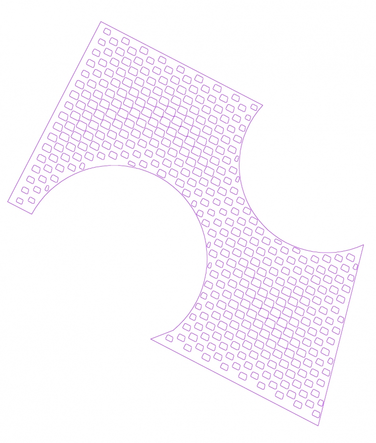 Au dessus du sol artificiel ainsi créer, se pose un dalle à caisson en béton fibré. Cette technique permet de combiner une esthétique qui renvoie à la nature constitutive de la feuille végétale et une interprétation des champs de forces statiques. Les alvéoles peuvent ainsi accueillir des éléments d’acoustique et de la technique.