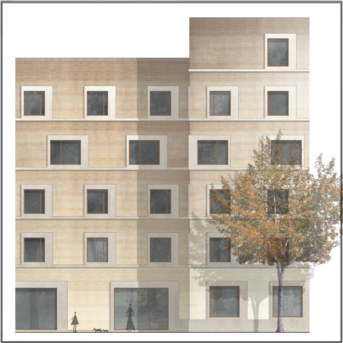 Le master-plan définit une forme urbaine déterminée par quatre volumes indépendants, offrant des porosités piétonnes (liaison nord-sud) et visuelles. La volumétrie du projet cherche des affinités et des proximités proportionnelles avec le bâti discontinu caractéristique de cet ouest lausannois. L’ensemble permet la transition altimétrique entre les immeubles avoisinants. Le découpage des volumes libère des terrasses qui profitent à la fonction, dans cet environnement de grande qualité paysagère ouvert sur le parc de Valency.