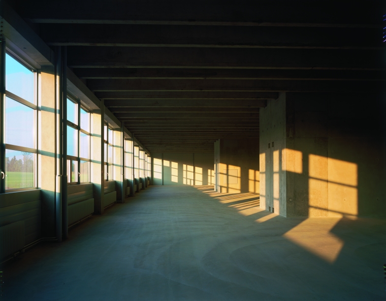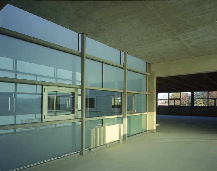 Le projet s’inscrit dans une nouvelle zone artisanale et industrielle et se base sur un plan directeur. Le concept d’implantation met en place une distribution claire des personnes et des marchandises, en mettant l’accent sur la facilité d’accès des véhicules, au moyen d’une rue intérieure, partiellement à ciel ouvert, qui offre un regard sur le paysage agricole environnant.