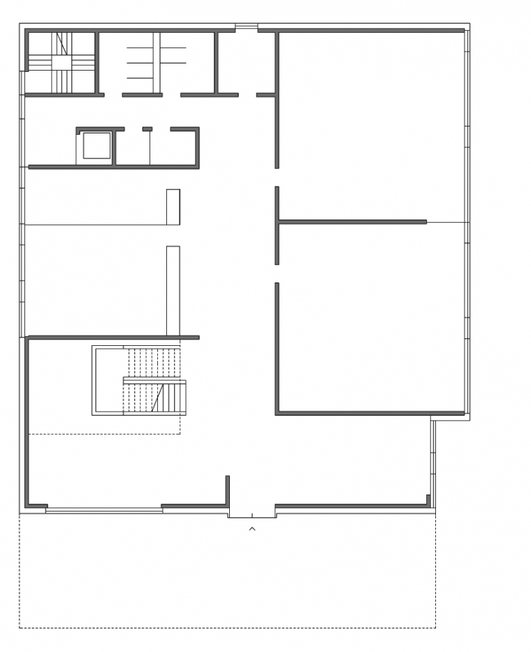 Le plan dispose des volumes intérieurs de béton brut, composés de manière un peu aléatoire pour mieux jouer avec la lumière naturelle. Les espaces communs se trouvent entre ces surfaces abstraites qui entourent chacune des classes. L’ escalier principal devient le point de référence spatiale du parcours.