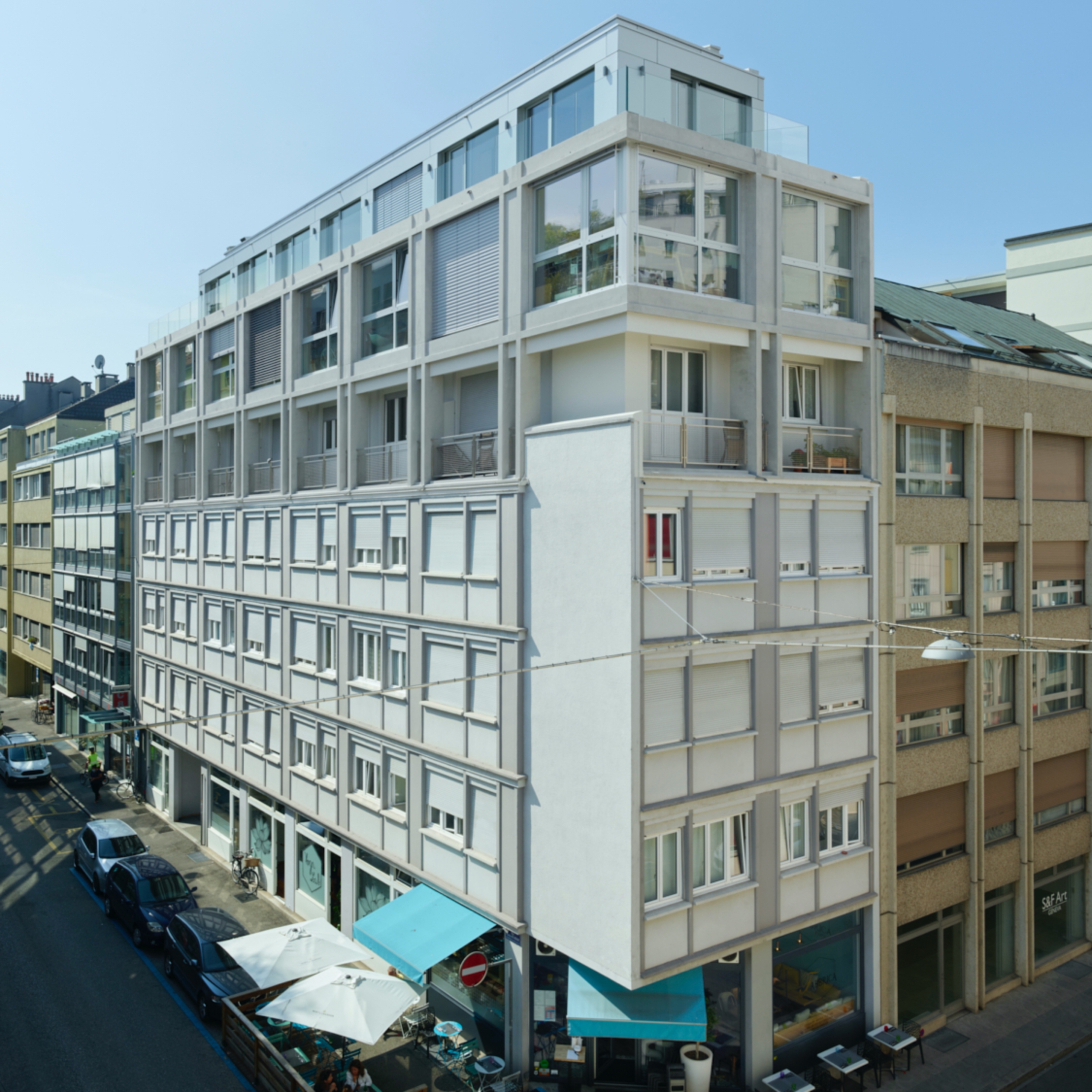 Ce projet s’inscrit dans la politique de densification du centre ville autorisant la surélévation des immeubles existants à Genève.