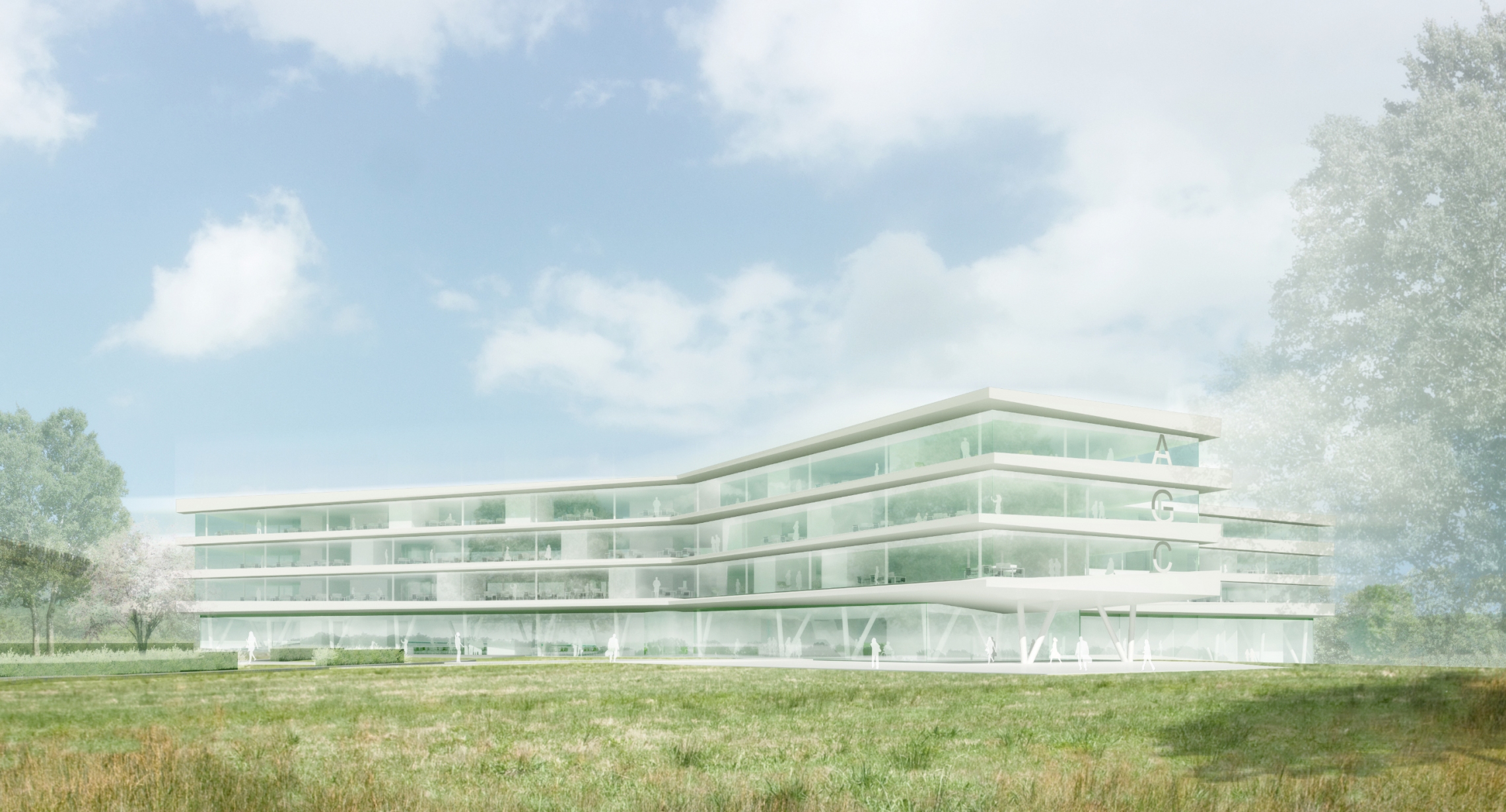 Sur les hauteurs Nord-Est de la ville de Louvain-la-Neuve, le site choisi par AGC pour accueillir son nouveau siège européen se situe le long d’un ancien chemin de crête dont le tracé jouxte l’actuelle Nationale 4 reliant Bruxelles à Arlon.