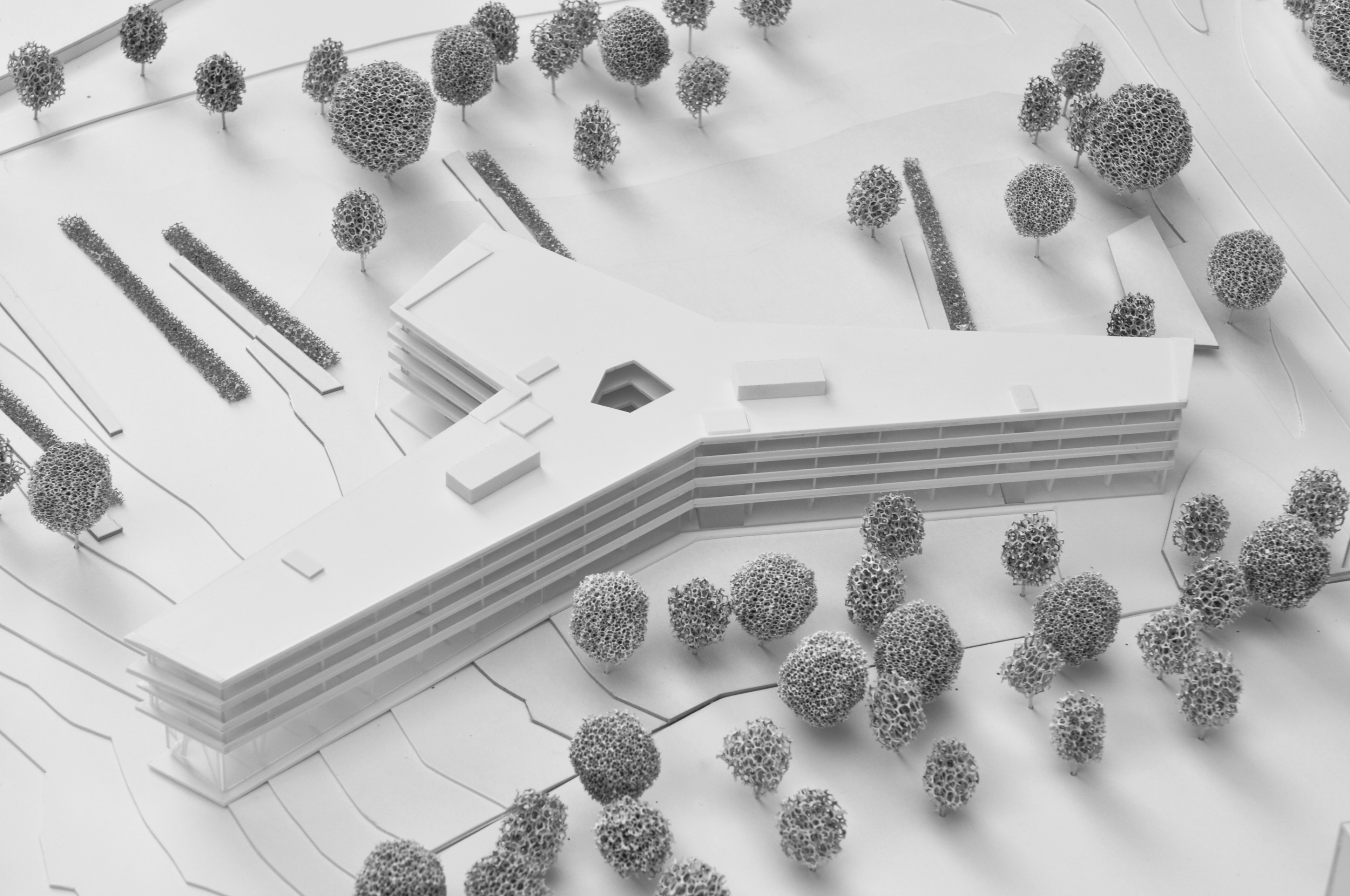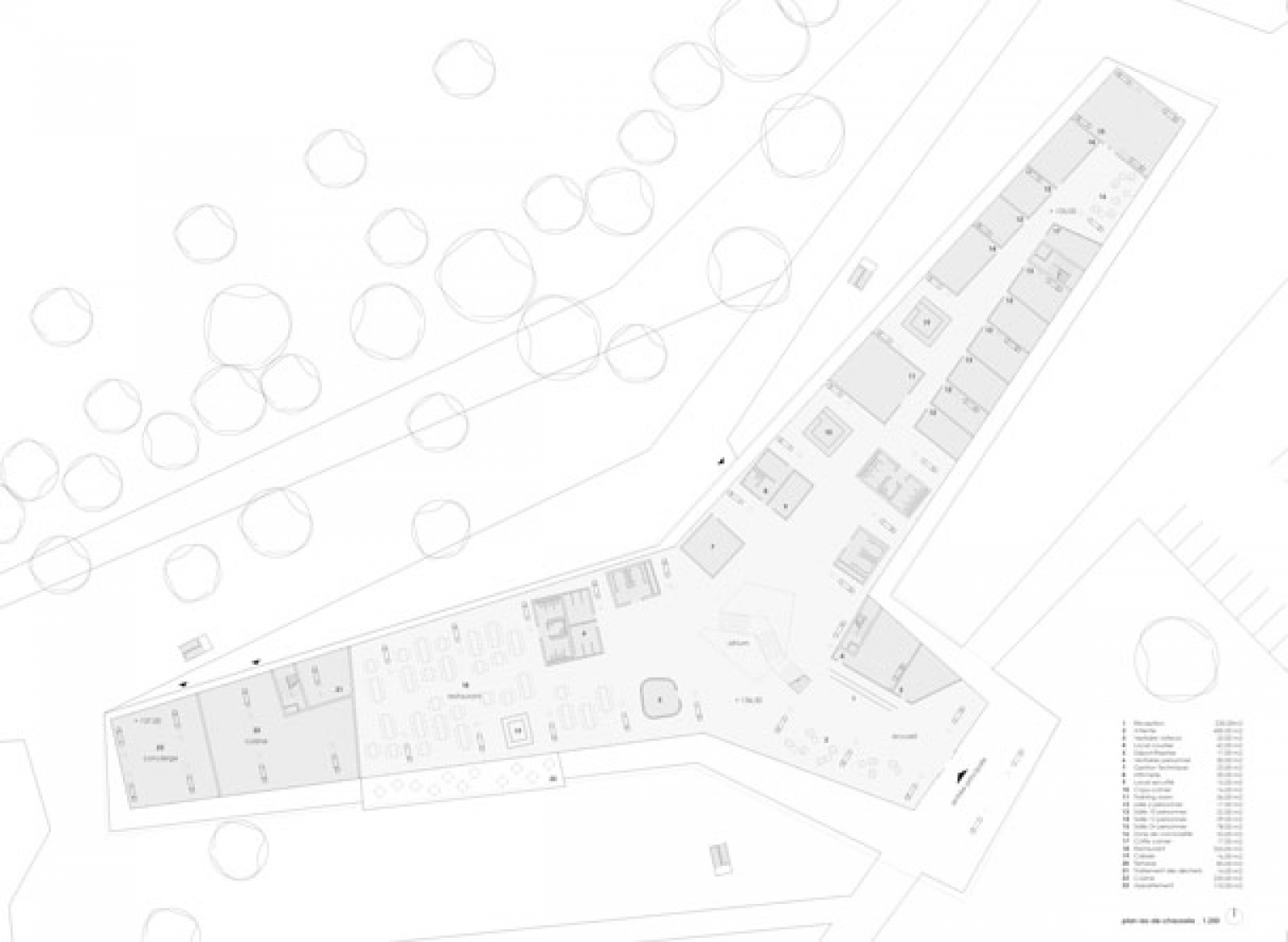 L’implantation retenue pour le projet dans ce site remet en question l’habituel alignement connoté XIXème pour former avec son environnement une approche paysagère, contemporaine et poétique.