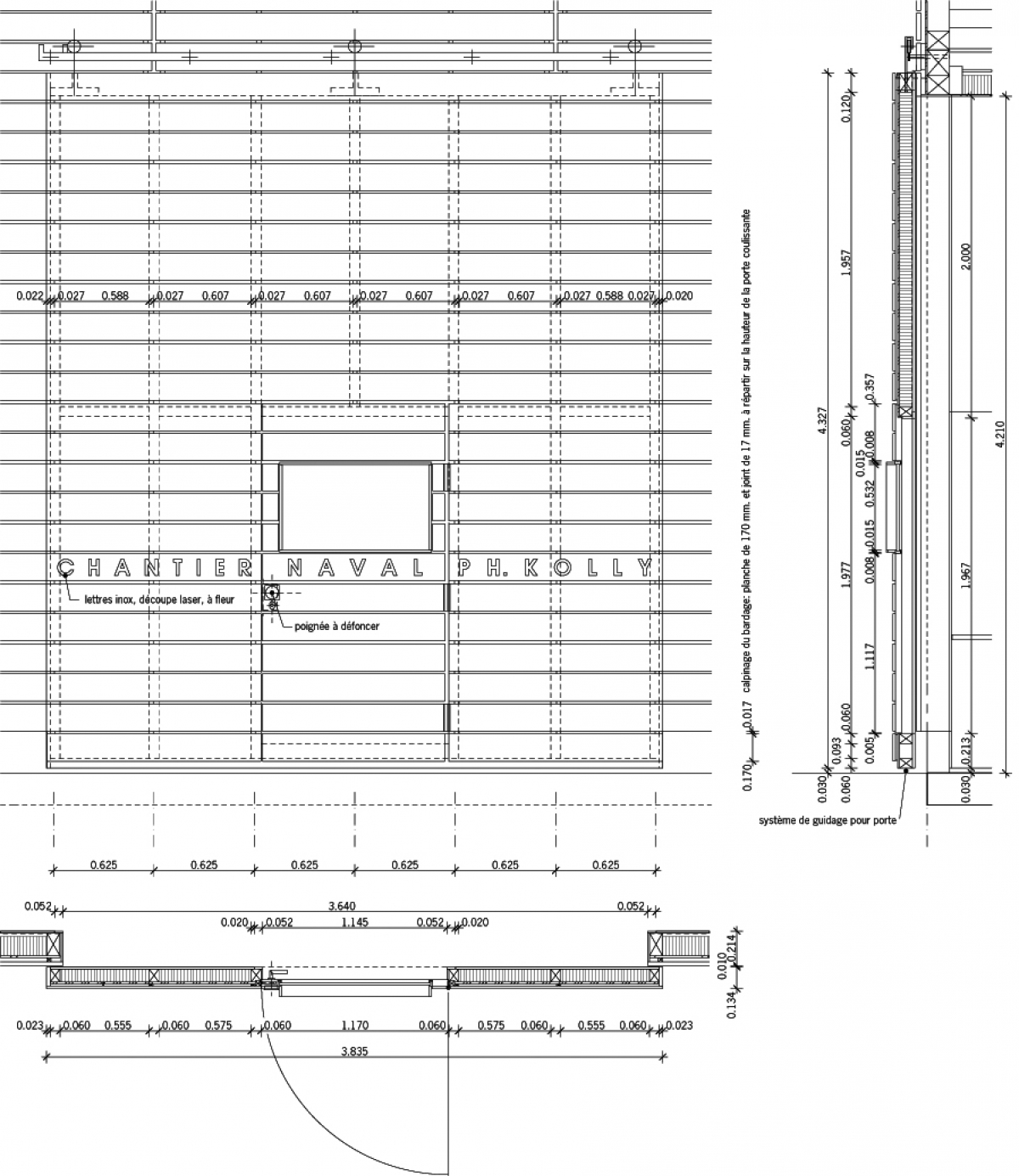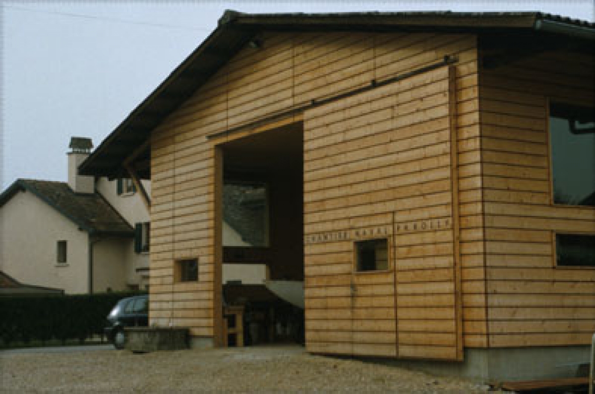 Le projet inscrit à la fois dans un budget extrêmement serré, (réutilisation de grands vitrages appartenant à une ancienne école, bois provenant d’un stock existant) et dans de courts délais de construction. Celle-ci est réalisée par le maître d’ouvrage lui-même, constructeur naval spécialisé dans la mise en œuvre du bois.