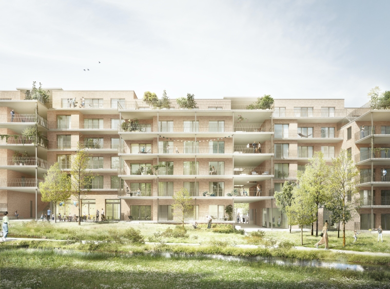 Des typologies traversantes sont offertes à quasi tous les appartements avec les pièces de jour orientées vers les espaces communs et le jardin. Les « clusters », vastes appartements communautaires, proposent une manière d’habiter entre colocation et location classique. Ils permettent de conserver l’intimité d’un logement tout en mettant en commun des espaces de vie.
