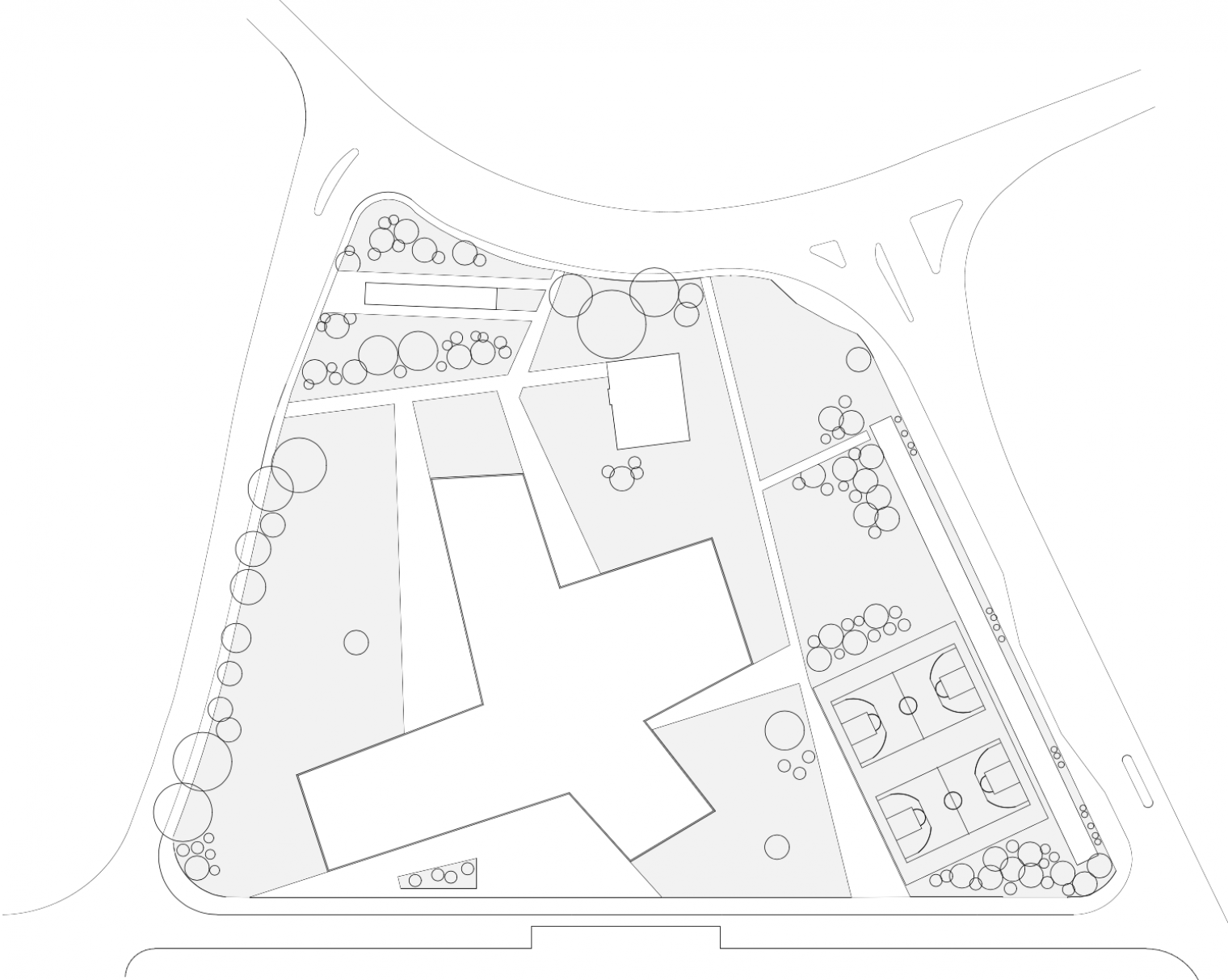 Afin de rendre compte de cette situation particulière et de faire en sorte que la nouvelle école de commerce participe à cette articulation, le bâtiment a été conçu de telle manière à être un objet dessiné comme une sorte de grande 'fleur' posée dans un espace vert. La position du dispositif d’entrée rend hommage à la présence de l’ancienne 'villa Patry' qui lui fait face.
