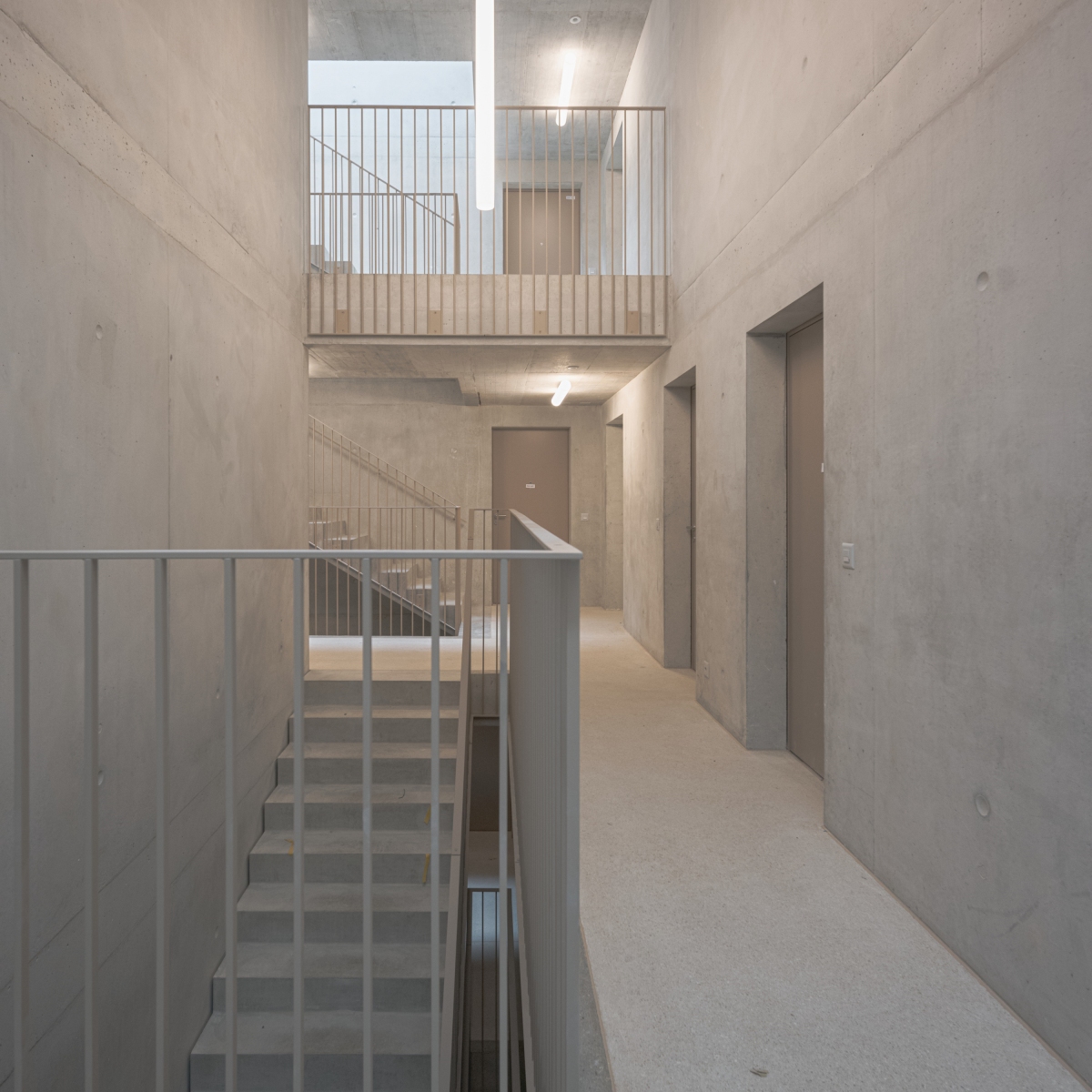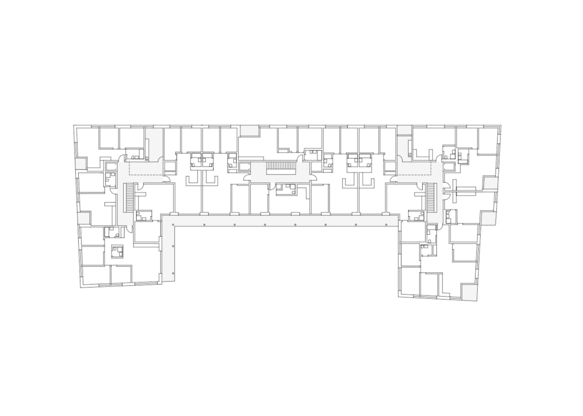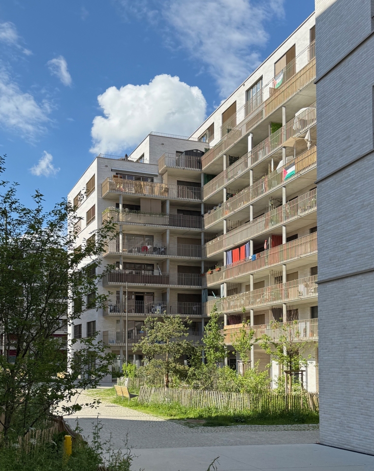 Le système distributif est pensé pour la collectivité avec des buanderies dans les étages prenant la lumière en façade. Des vides dans les cages d’escaliers permettent aux occupants de se voir, de se parler.