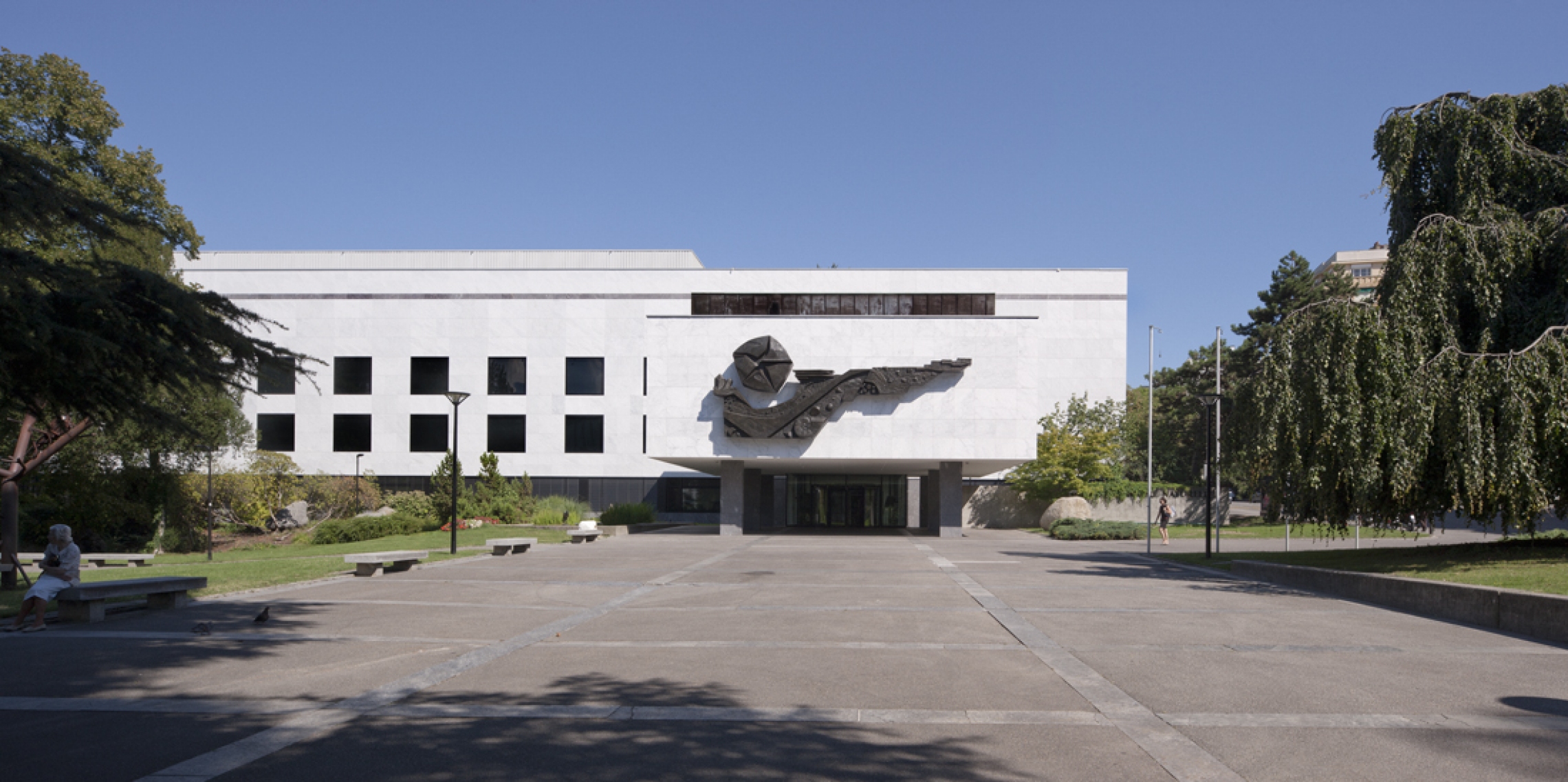 Du point de vue de son langage architectural, le Musée est très atypique de son époque et c’est ce qui en fait son intérêt. Raymond Tschudin, architecte genevois établi à Bâle, gagne le concours lancé en 1947. Après de nombreuses années d’errance, le projet est déposé auprès du Département des Travaux Publics en 1960. Il est finalement exécuté entre 1965 et 1966 avec la collaboration de l’architecte genevois Michel Girardet. Aujourd’hui inscrit au patrimoine architectural genevois, le bâtiment est amené à devoir changer le matériau de façade.
