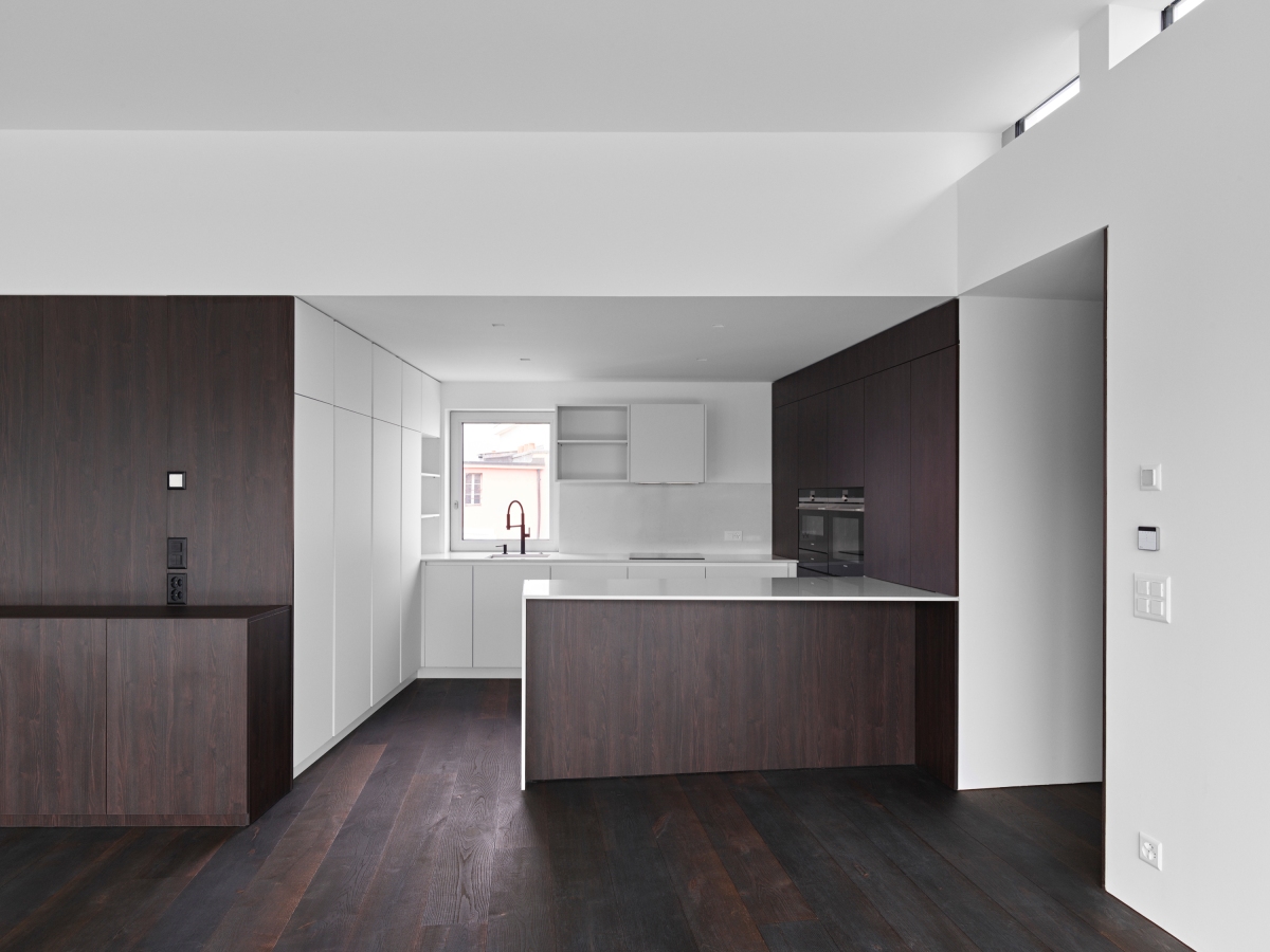 Les typologies ajoutées gardent une continuité avec les appartements d’origine de cet immeuble construit à la fin des années soixante par les frères Honegger. Une terrasse commune en toiture est prévue ainsi que de nouvelles installations de panneaux solaires et une pompe-à-chaleur. Construit à partir de la toiture existante, ce chantier se déroule en site occupé, y compris au dernier étage. Pour y arriver, un nouveau plancher avec un vide technique d’environ 30 cm permet la déviation des gaines de ventilation et conduites d’eaux pluviales entre les étages existants et les nouveaux. Des poteaux en béton préfabriqués posés aux balcons du 4ème étage descendent la charge des nouveaux étages en continuité avec les porteurs des façades existants. Les nouveaux planchers mixtes bois-métal permettent de réduire le poids des niveaux rajoutés.