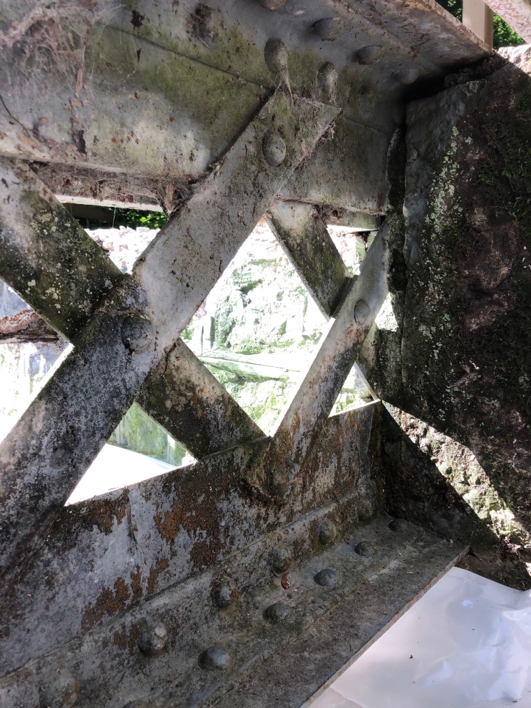 Dans le bois de Machefer, une passerelle de la fin du XIXème siècle en acier puddlé alimentait une puissante pompe dans un bâtiment dénommé ‘Tourne’ qui irriguait l’imposante fontaine du Château de St Loup aujourd’hui disparu. Construite par Charles Schmiedt en 1887, sa morphologie caractéristique de la période constructive à rivets est représentative de la transition entre la fonte et l’acier, entre la serrurerie ‘artisanale’ et la sidérurgie industrielle.