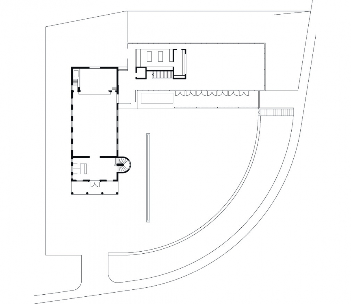 La nouvelle salle communale, constituée de deux éléments hétérogènes, s’offre aux futurs utilisateurs comme une agrégation de matières qui est le fruit d’une réflexion inhérente liée à l’époque de leur conception respective. Leur confrontation dans le paysage se veut une attitude respectueuse de l’identité du lieu et, en même temps, garante d’une image clairement attachée à une institution collective.