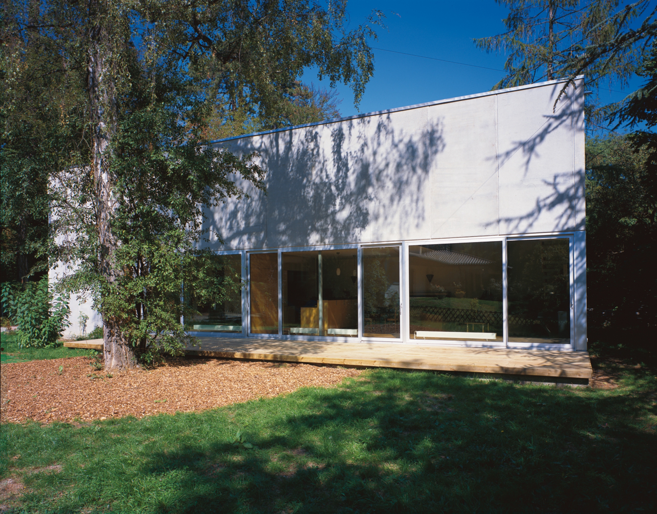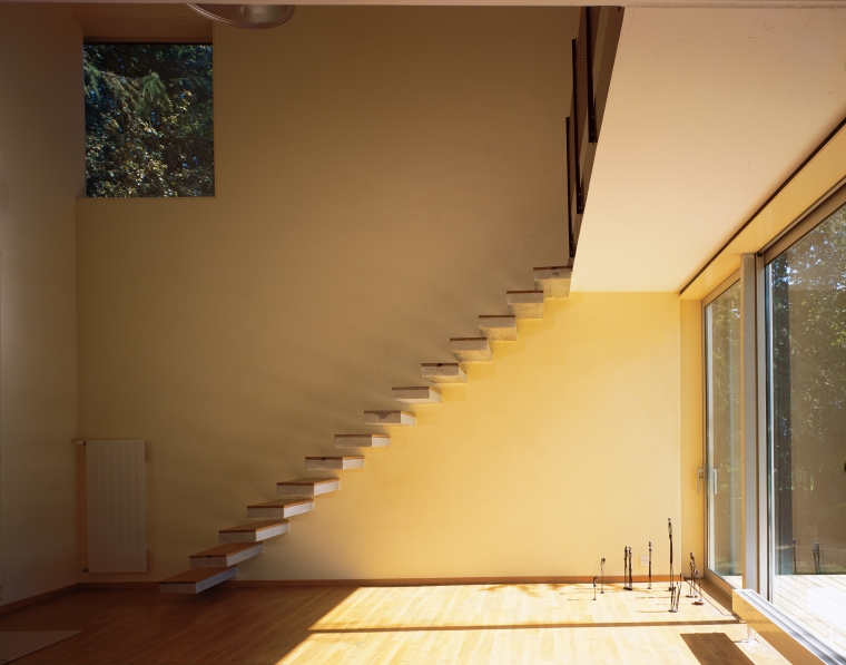 Réalisée avec un budget modique, cette villa cherche dans la rationalité de la mise en œuvre les fondements de sa plasticité et de son esthétique. Elle se présente sous la forme d’un parallélépipède pur, de proportion allongée. Les parcours intérieurs et la disposition des pièces de jour et de nuit, en relation avec le paysage, ont défini le dessin de l’enveloppe et de ses ouvertures.