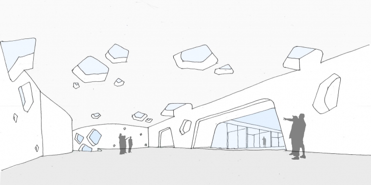 Dans l’abstraction du volume, le caractère organique des ouvertures est un «clin d’oeil» au festival et son emblème animalier. Les façades murales sont aussi «pointillées» par de très petites ouvertures qui créent le rapport à la ville.