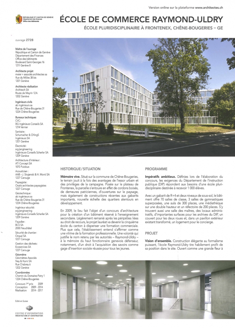 école de commerce raymond uldry _ schweizer baudokumentation 2020, février 2020